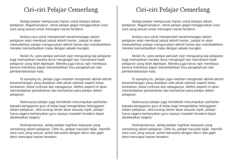 Contoh Karangan Upsr Ciri Ciri Murid Cemerlang